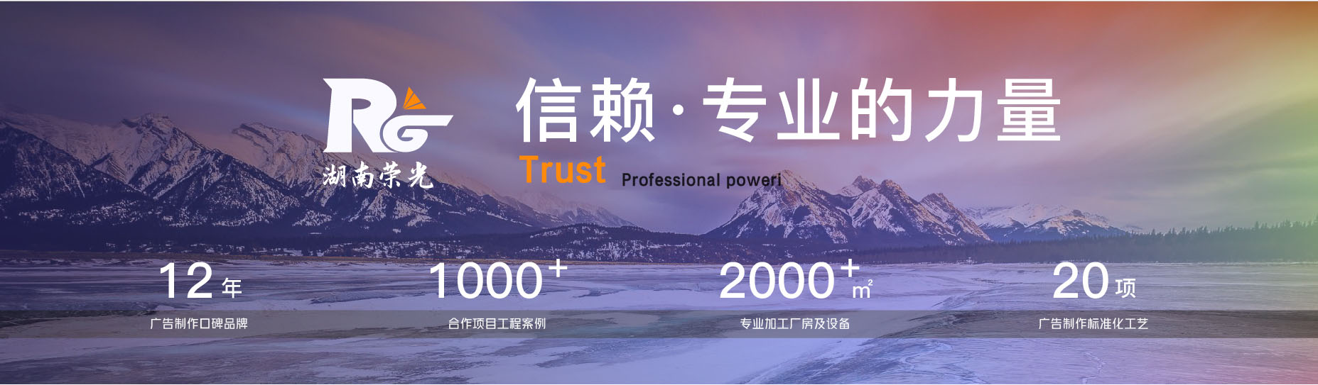 走進(jìn)湖南榮光About Us湖南榮光公司是一家總部位于長沙的廣告公司,公司現(xiàn)有管理團(tuán)隊技術(shù)骨干20余人,擁有專業(yè)的安裝隊伍及售前售后團(tuán)隊、資深的文化墻設(shè)計、黨建文化設(shè)計和廣告標(biāo)識設(shè)計團(tuán)隊。現(xiàn)有廣告標(biāo)識及發(fā)光字加工生產(chǎn)廠房2200平米,150平米標(biāo)準(zhǔn)化烤漆加工房。全自動發(fā)光字折彎機(jī)、雕刻機(jī)、激光切割機(jī)、平板UV設(shè)備等十余臺。同時具有強(qiáng)大的LED顯示屏供應(yīng)鏈、為您企業(yè)的廣告投入,實現(xiàn)創(chuàng)新和快速反應(yīng),提供了有力保障。
